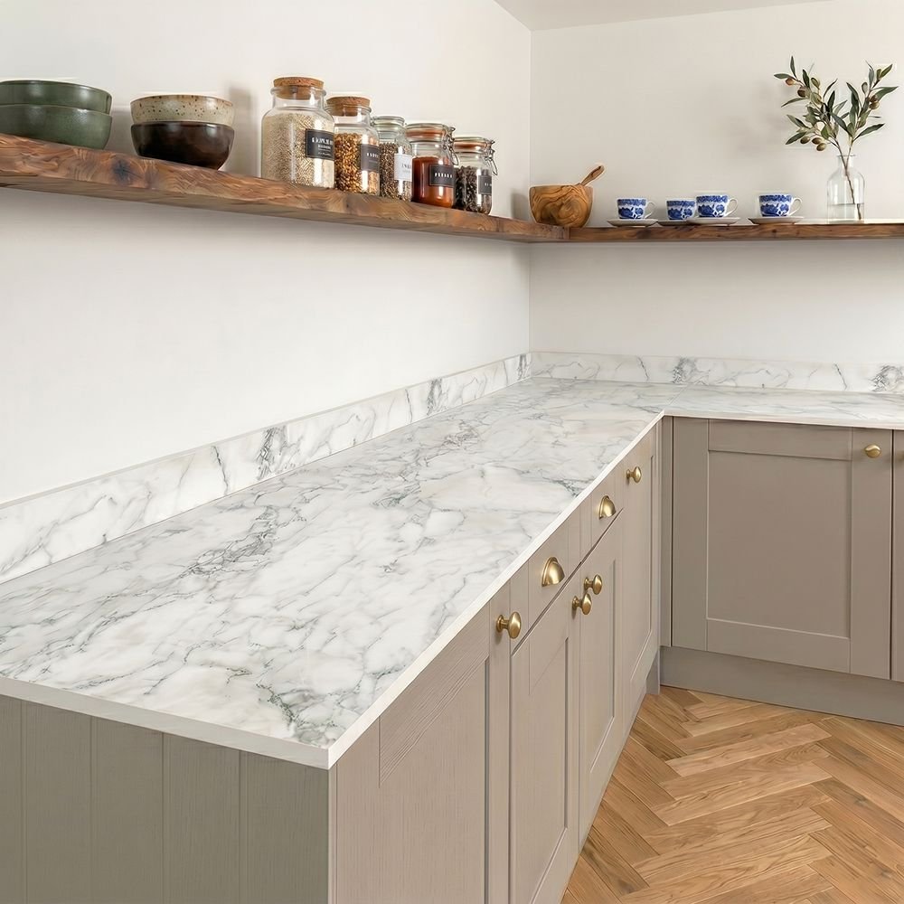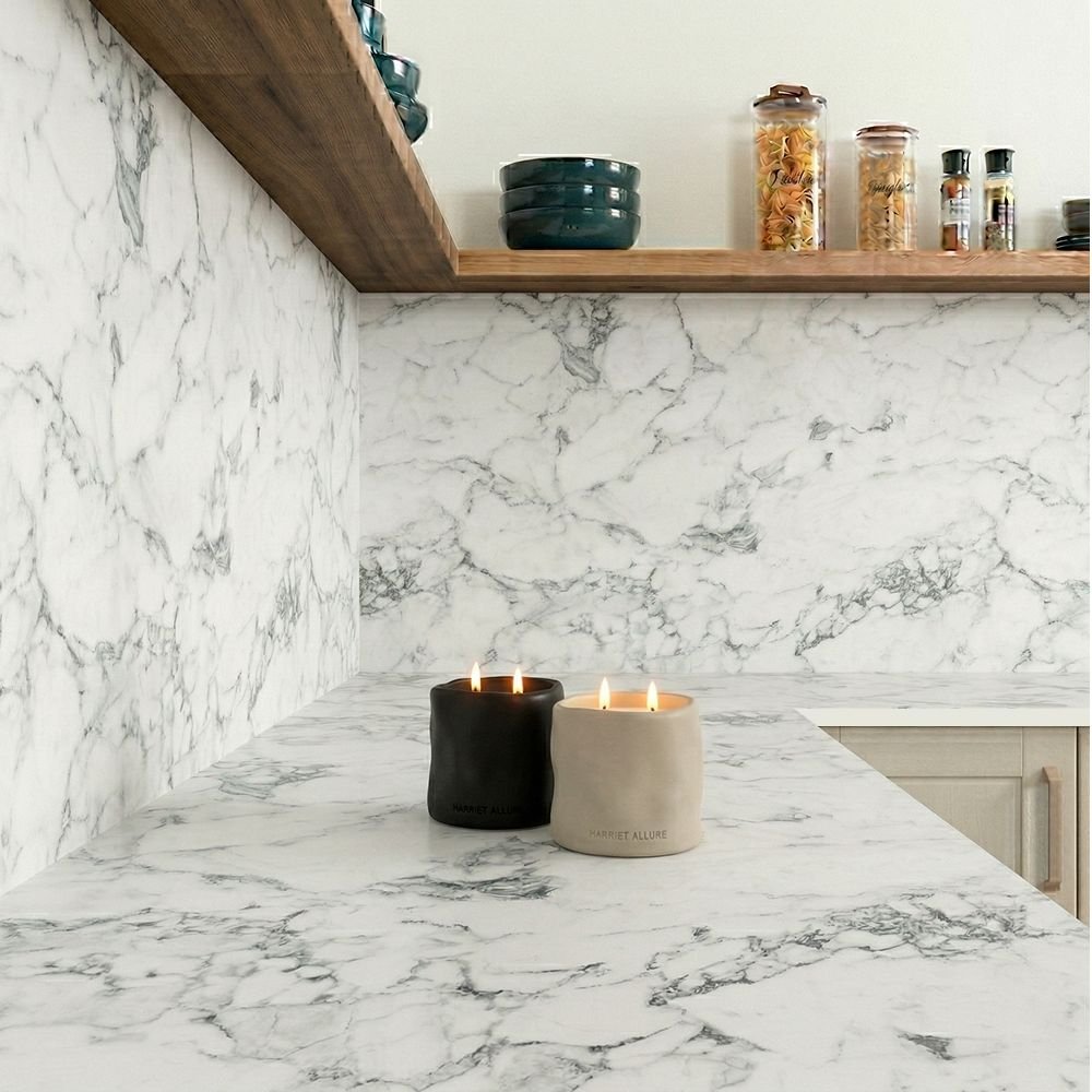 Elevate your kitchen with the Cranbury Marble compact laminate upstand and splashback. Featuring a sleek white marble-effect surface with bold black veining, it offers the luxurious look of Cranbury Marble with the durability of compact laminate. Scratch, stain, and heat-resistant, this upstand and splashback combines modern style with easy maintenance and long-lasting performance, perfect for contemporary kitchens.
