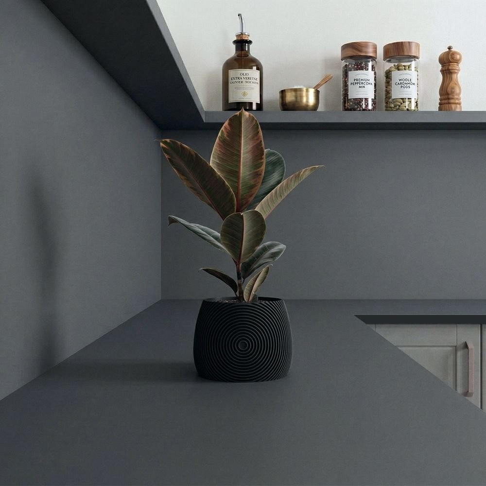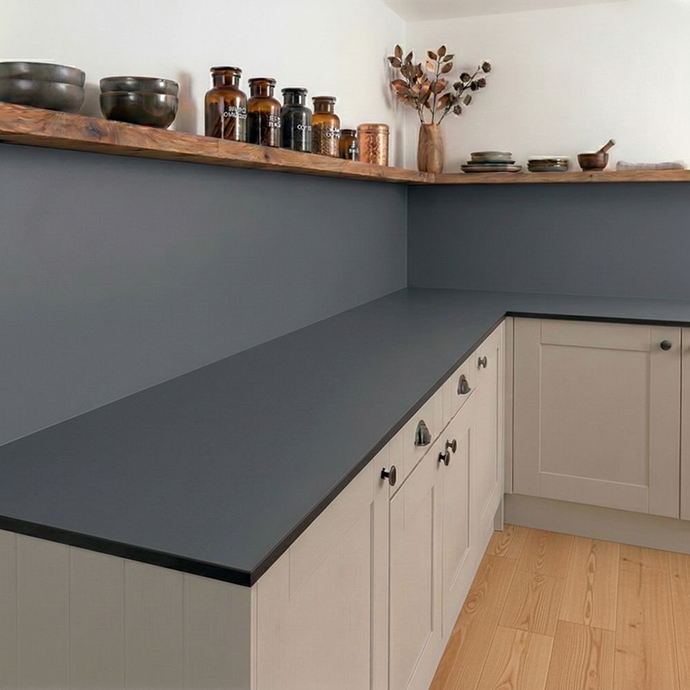 Our Graphite Grey compact laminate upstand, with its solid black core and smooth matte surface, effortlessly adapts to a range of kitchen design styles for a long-lasting contemporary aesthetic.