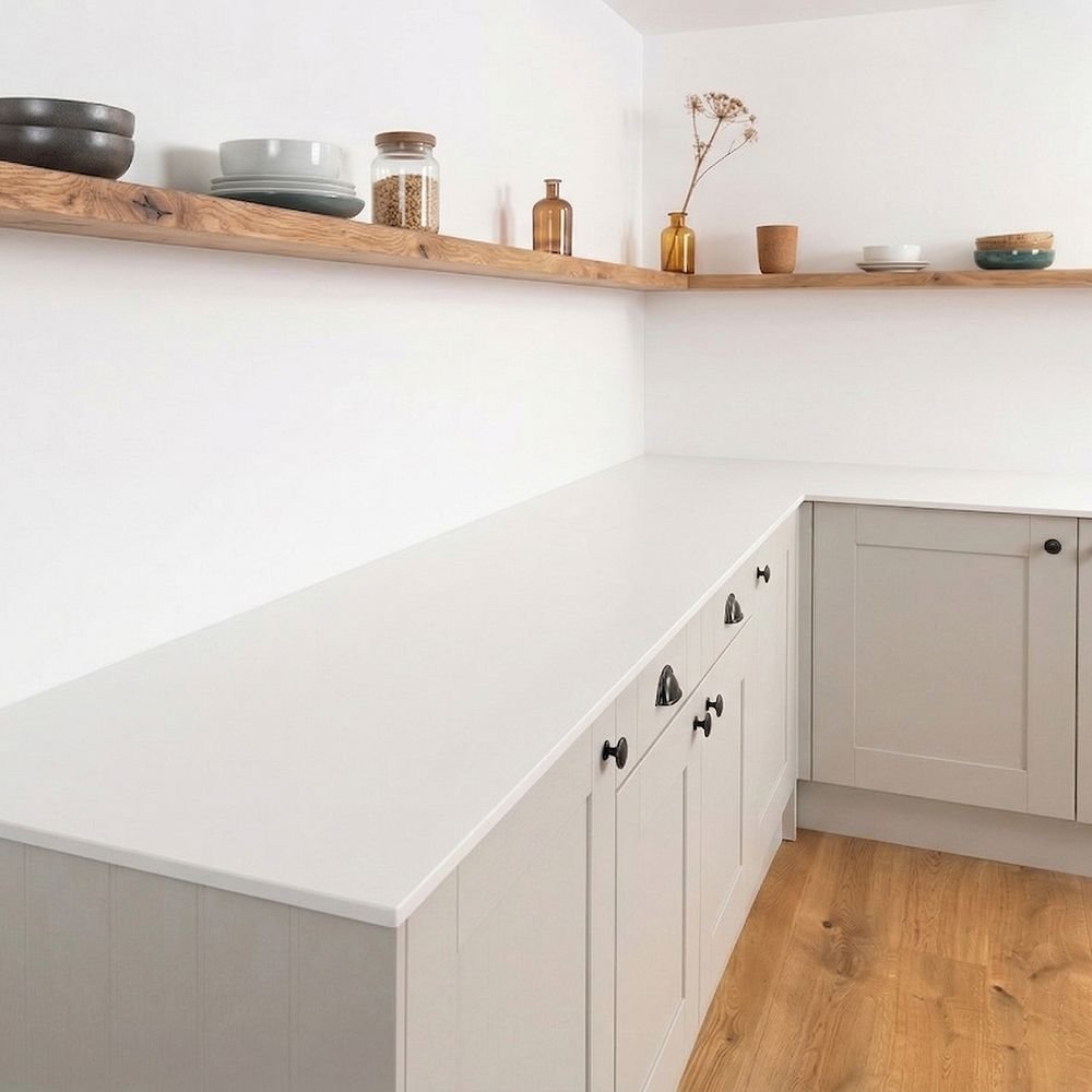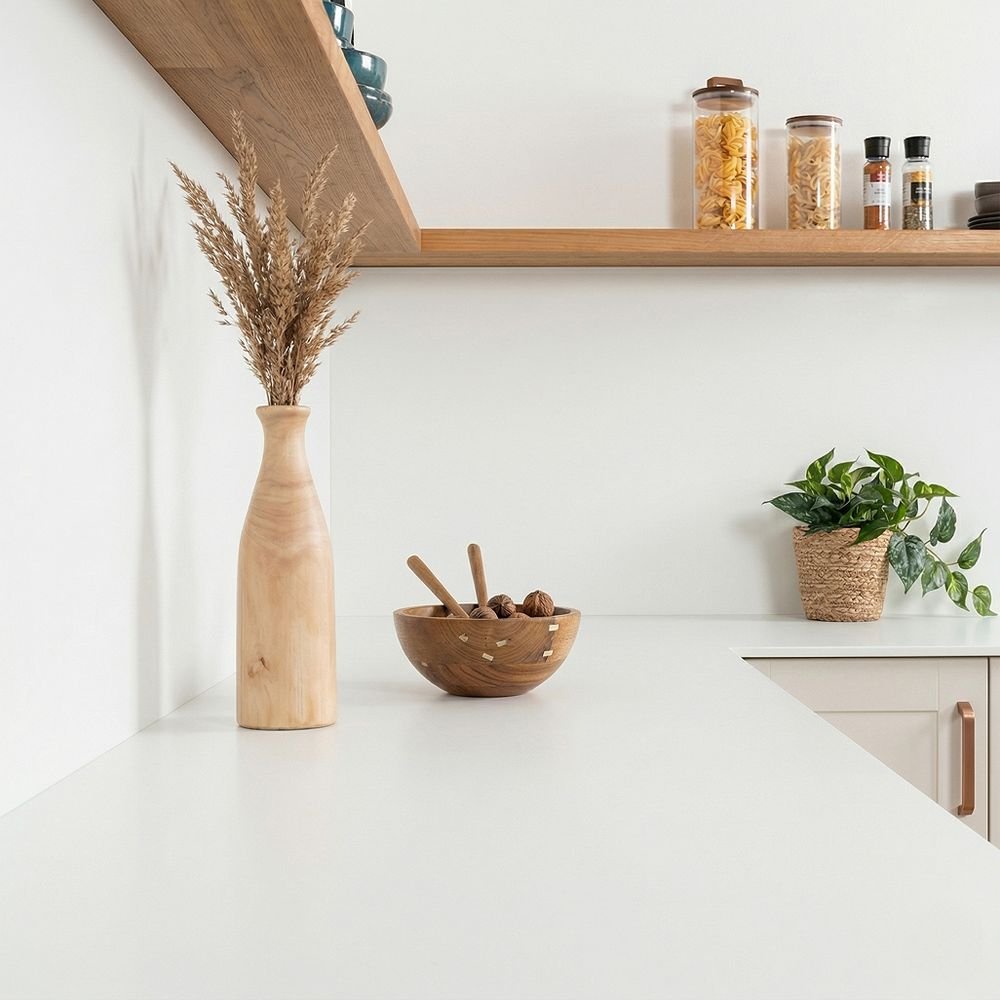 Instantly modernise your kitchen with our premium Lucida White compact laminate upstands and splashbacks. With the lightest hint of warmth, these slimline, matte white surfaces offer versatility for any kitchen style.