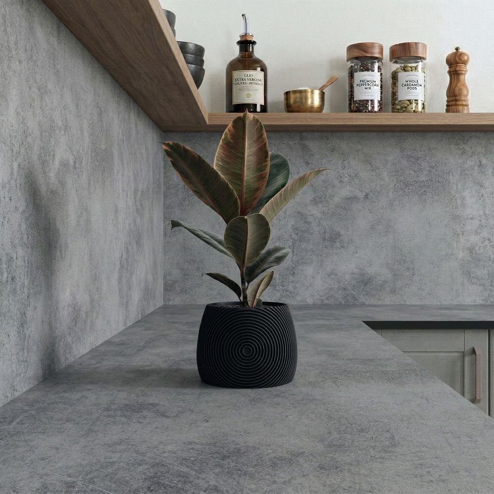 Add a touch of effortless class to your kitchen with this stunning concrete-effect upstand and splashbacks! The Terra Concrete Compact Laminate upstand features a matte grey colour palette with freckles of darker grey and black. A classic, timeless look with a silky smooth matte finish and a solid black core.