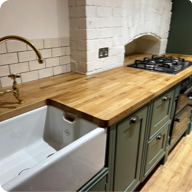 Opting for a wooden worktop in your kitchen means choosing timeless beauty, durability and versatility. With its natural antibacterial properties and unique grain patterns, wood provides a hygienic and characterful surface that complements any kitchen style.